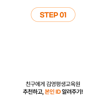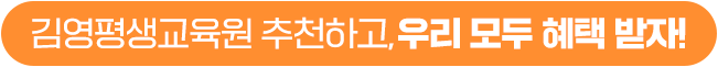 · 추천 하는 친구는 김영평생교육원 회원가입이 되어있어야 하며, 추천 받은 친구(신규회원)이 6과목 이상 패키지를 등록하여야 이벤트 참여로 인정됩니다.