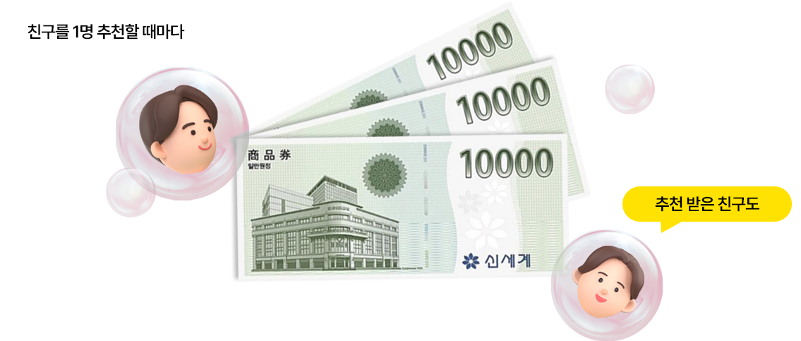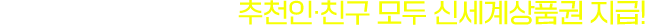 · 친구추천 이벤트는 제세 공과금을 제외하지 않고 상품권으로 지급합니다.